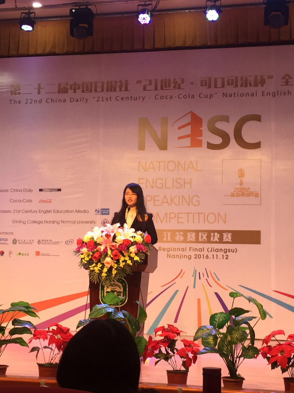 喜报——365英国官网学生在2016年“21世纪杯”全国英语演讲大赛江苏赛区决赛中摘得大赛一等奖