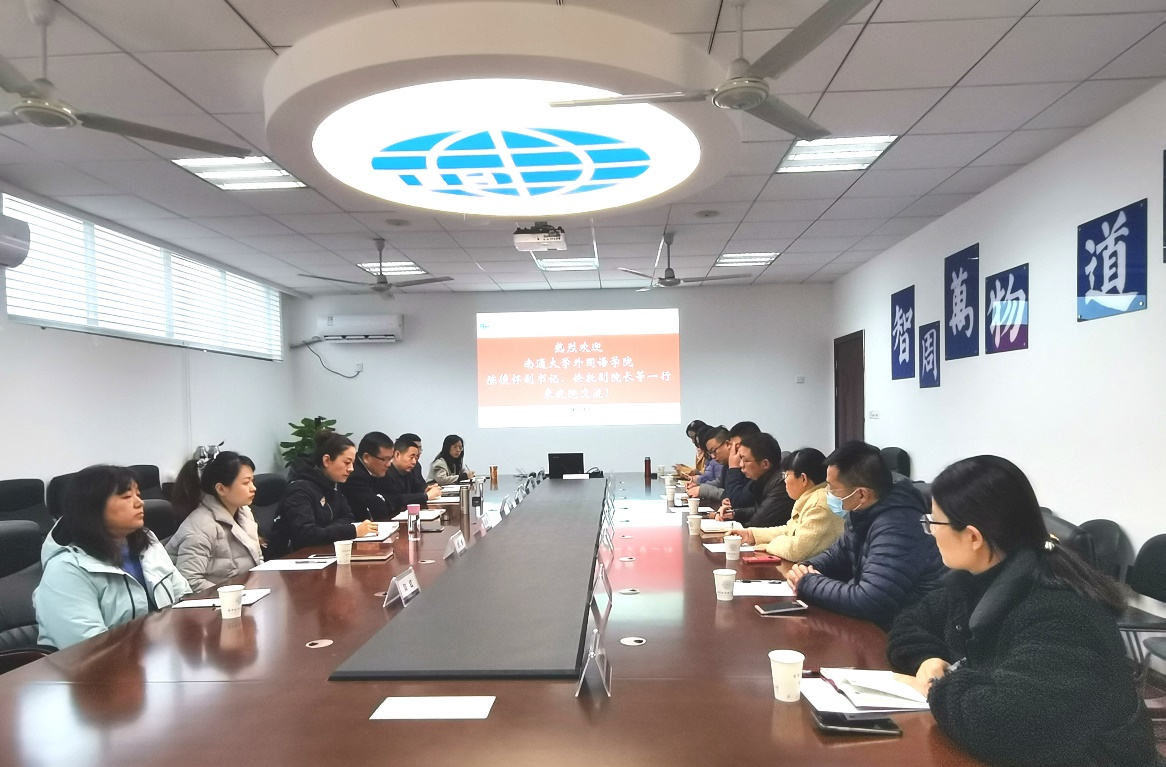 12月2日,南通大学365英国上市公司在线党委副书记陈俊怀、副院长徐托等一行来365英国官网调研。院长范祥涛、副院长徐以中、党委副书记梁薇、副院长姜礼福、大学外语教学部主任徐智鑫,研究生外语教学部主任陆红、学院党政办相关人员出席座谈会。