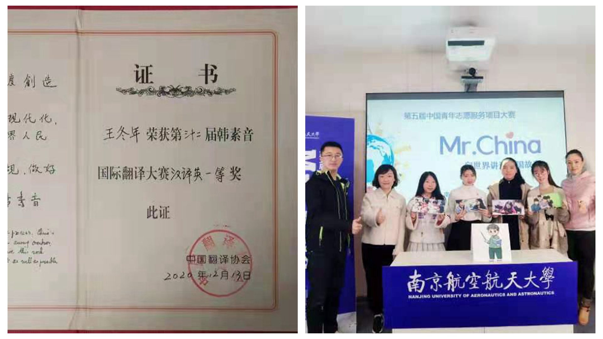 人才培养质量实现新提升。2018年,根据学校部署,开展学院教育思想大讨论,明确了“为学校提供优质外语教学支撑,为国家输送具有国际视野的优秀专业人才”的人才培养目标。完善构建宽口径人才培养体系,英日语专业重构课程体系,开办英语专业辅修专业。2017年,完成学位点自评工作,并在第四轮学科评估中获得C+结果。多举措提升研究生招生规模与生源质量。推进校企协同育人,获批教育部产学协同育人项目1项,江苏省研究生工作站1个,与世界500强大唐公司合作举办高级研修班。实施外语人才“创新能力提升工程”,助力科创竞赛实现突破。“Mr. China:向世界讲述中国故事”实践团队,2019年获首届“力行杯”江苏省大学生社会实践项目大赛二等奖、2020年获江苏省志愿服务项目大赛一等奖、全国银奖。实施“外语人才素质能力提升工程”,助力高水平竞赛获奖等级持续攀升。2020年韩素音国际翻译大赛,365英国官网学生荣获一等奖。纽约国际模拟联合国大会大赛,连续多年获得团体奖,个人立场文件奖合计11项。“外研社杯”阅读、演讲、写作系列英语大赛,365英国官网学生连续多年斩获多项大奖。学院连续两年学风建设问卷调查满意度位列全校第一,连续两年荣获学校“学风建设工作特色奖”。关爱学生成长,实施“本科生学业攀登计划”,帮助学困生进步;英语专业优秀学生助力北京冬奥申请,获得赴联合国总部实习机会。杰出校友反哺,校友感念学院和班主任,设立“茗扬开拓者奖学金”,奖励具有协作、创新精神的在校生。