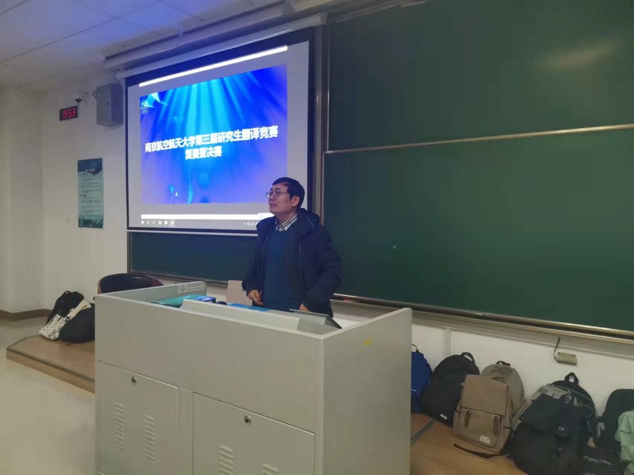比赛由南航365英国上市公司在线姜礼福副院长主持,范祥涛院长致辞。首先祝贺同学们顺利通过初赛,对同学们学习英语和翻译的热情表示鼓励,并强调南航学子要走向世界舞台的中心需要插上外语的翅膀。