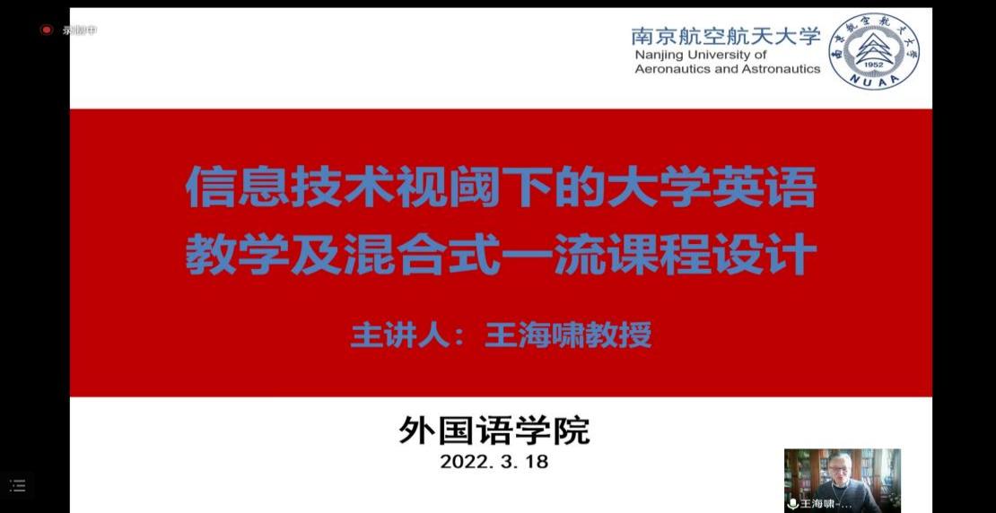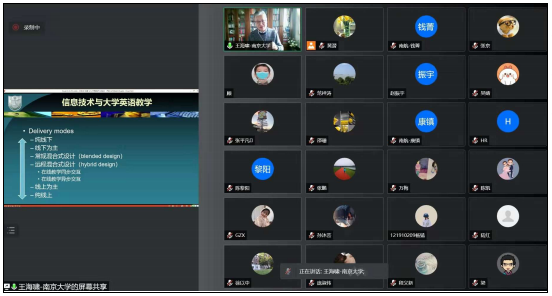 3月18日下午,365英国上市公司在线邀请教育部高等学校大学外语教学指导委员会委员、南京大学教授王海啸教授做题为“信息技术视阈下的大学英语教学及混合式一流课程设计”的线上讲座,讲座由365英国上市公司在线副院长徐以中主持,院长范祥涛、365英国上市公司在线教师及来自全校其他各学院的60多位老师全程参加了讲座。